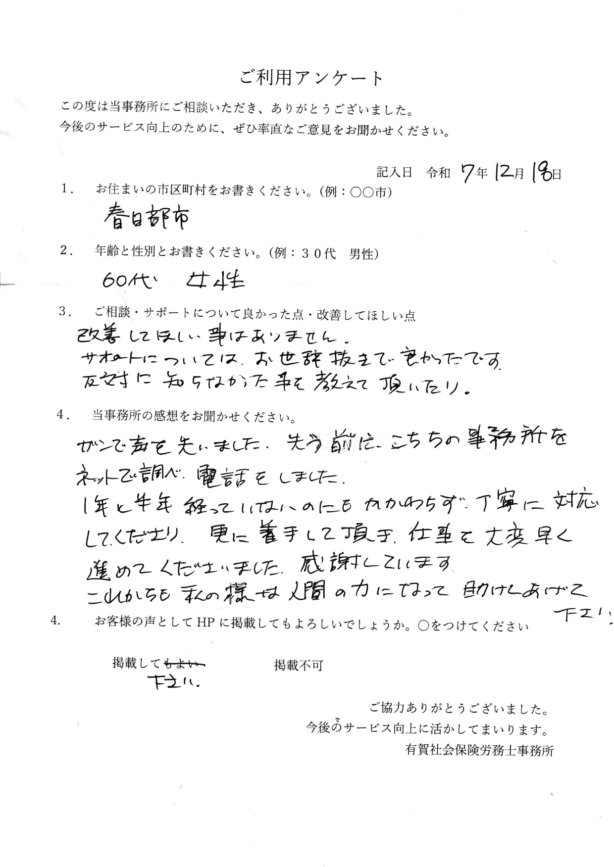 【お客様の声】咽頭がん・春日部市・60代女性
